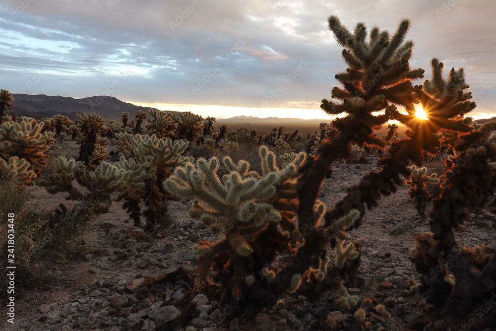 Emerging Sunrise Over The Cholla Cactus Garden In Joshua Tree National Park Stock Photo Adobe Stock